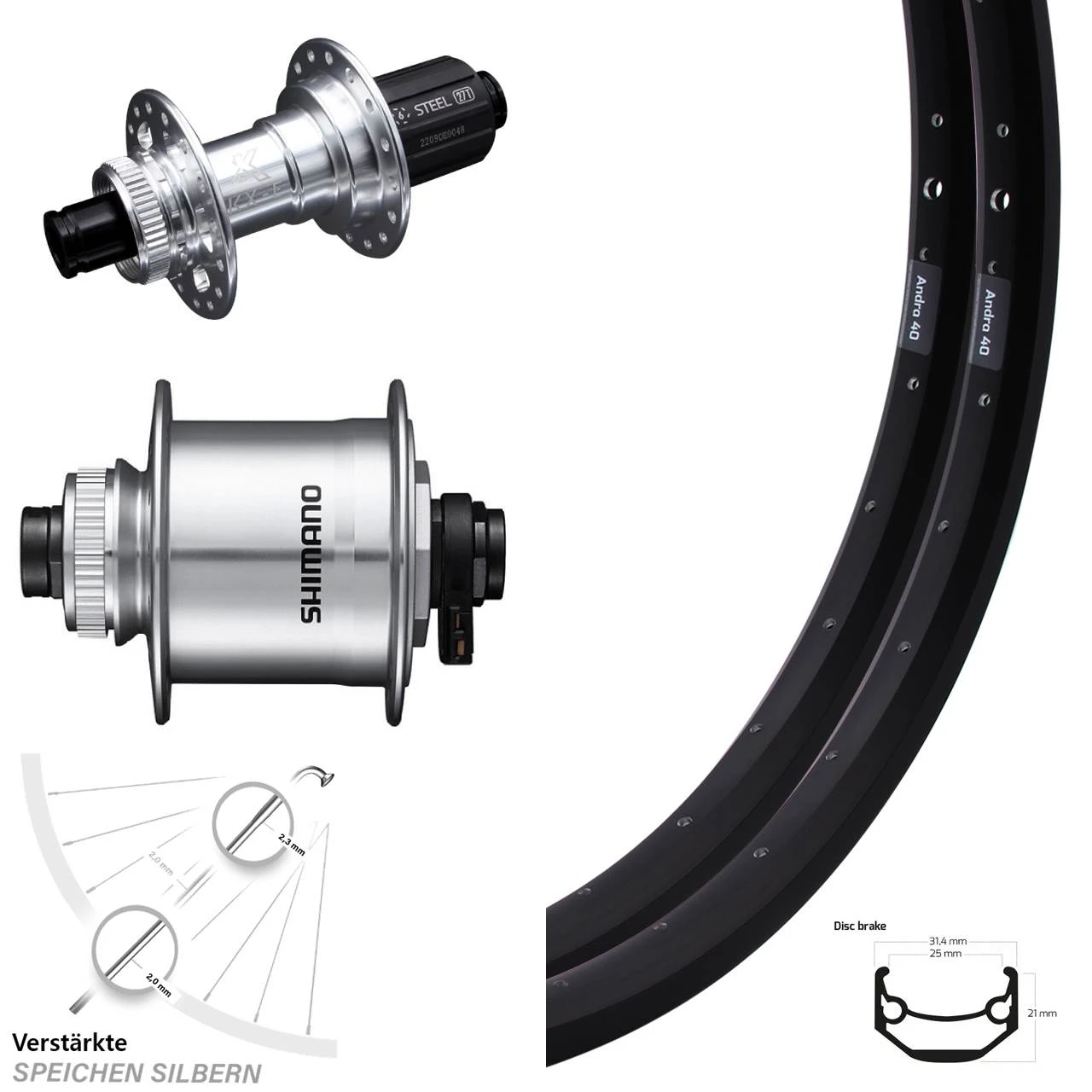 Technische Daten Ryde Andra 40 Laufradsatz 28-29 Zoll KX-E Nabe silbern Dynamo Shimano DH-UR708-3D