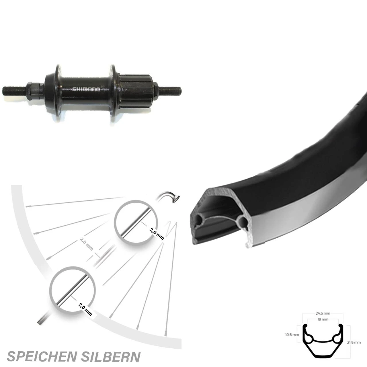 Technische Daten Hinterrad Ryde ZAC 2000 Felgenbremse schwarz und Nabe Shimano FH-TY500 schwarz Vollachse 130 mm