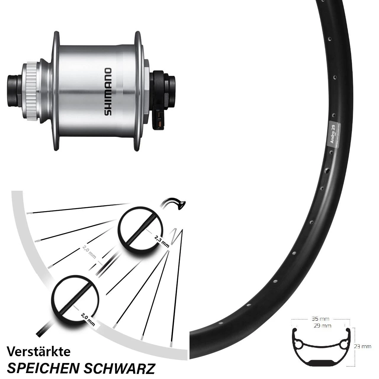 - Vorderrad 27,5 Zoll, 27,5+ Zoll Ryde Andra 29 schwarz mit Nabendynamo Shimano DH-UR708-3D silbern