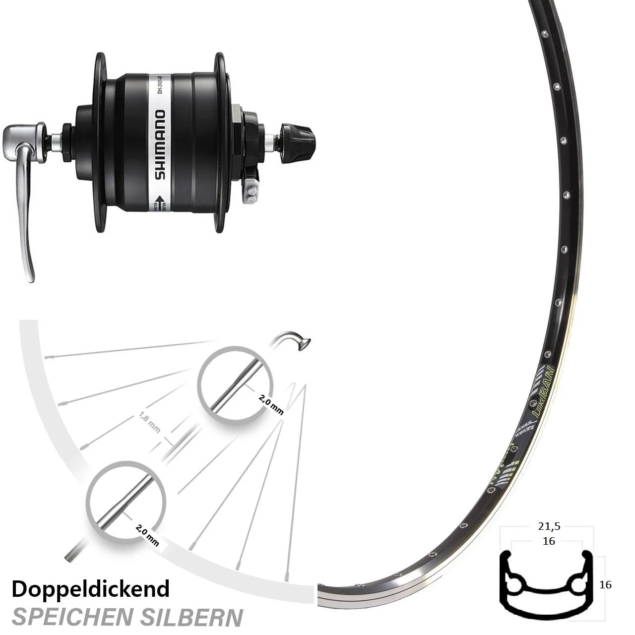 Vorderrad 28 Zoll DRC ST-16 Felgenbremse Dynamo Shimano DH-3N31 mit Doppeldickendspeichen