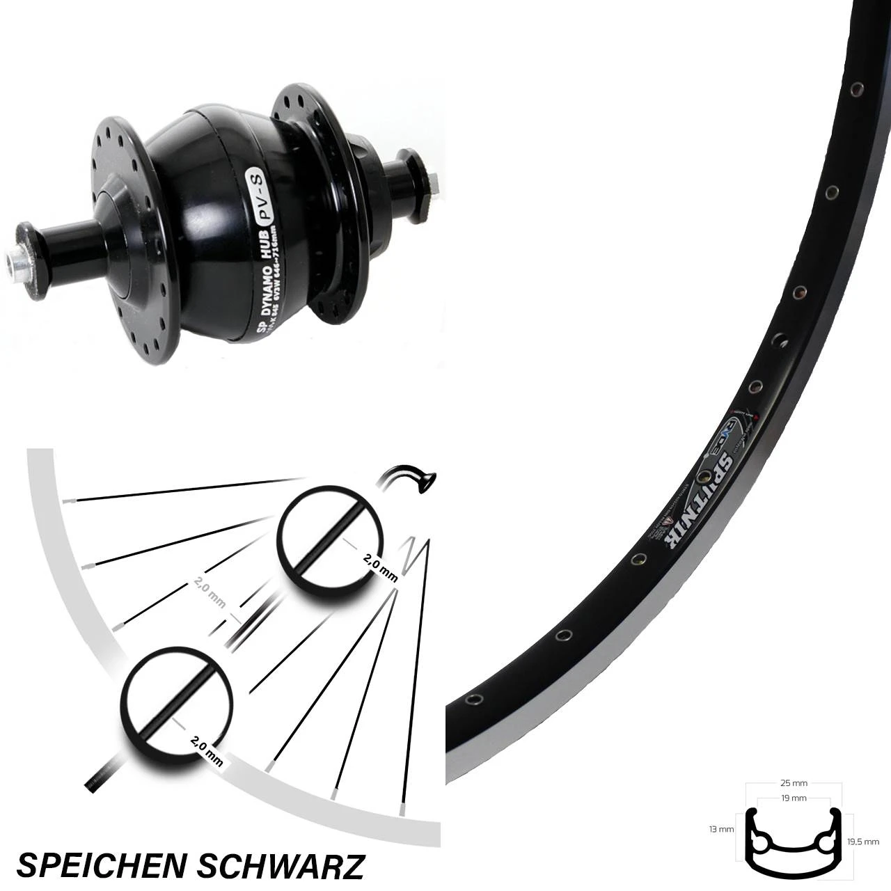 Technische Daten vorderes Laufrad Ryde Sputnik schwarz & Nabendynamo Shutter Precision PV-8 Felgenbremse schwarz