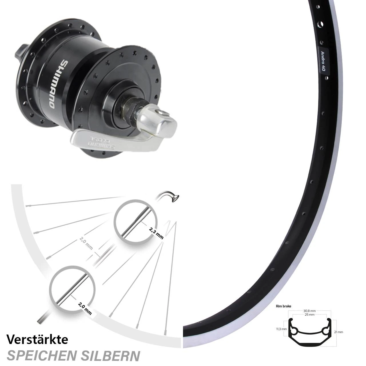 - Vorderrad 28 Zoll, 29 Zoll Ryde Andra 40 schwarz mit Nabendynamo Shimano DH-3N72 schwarz