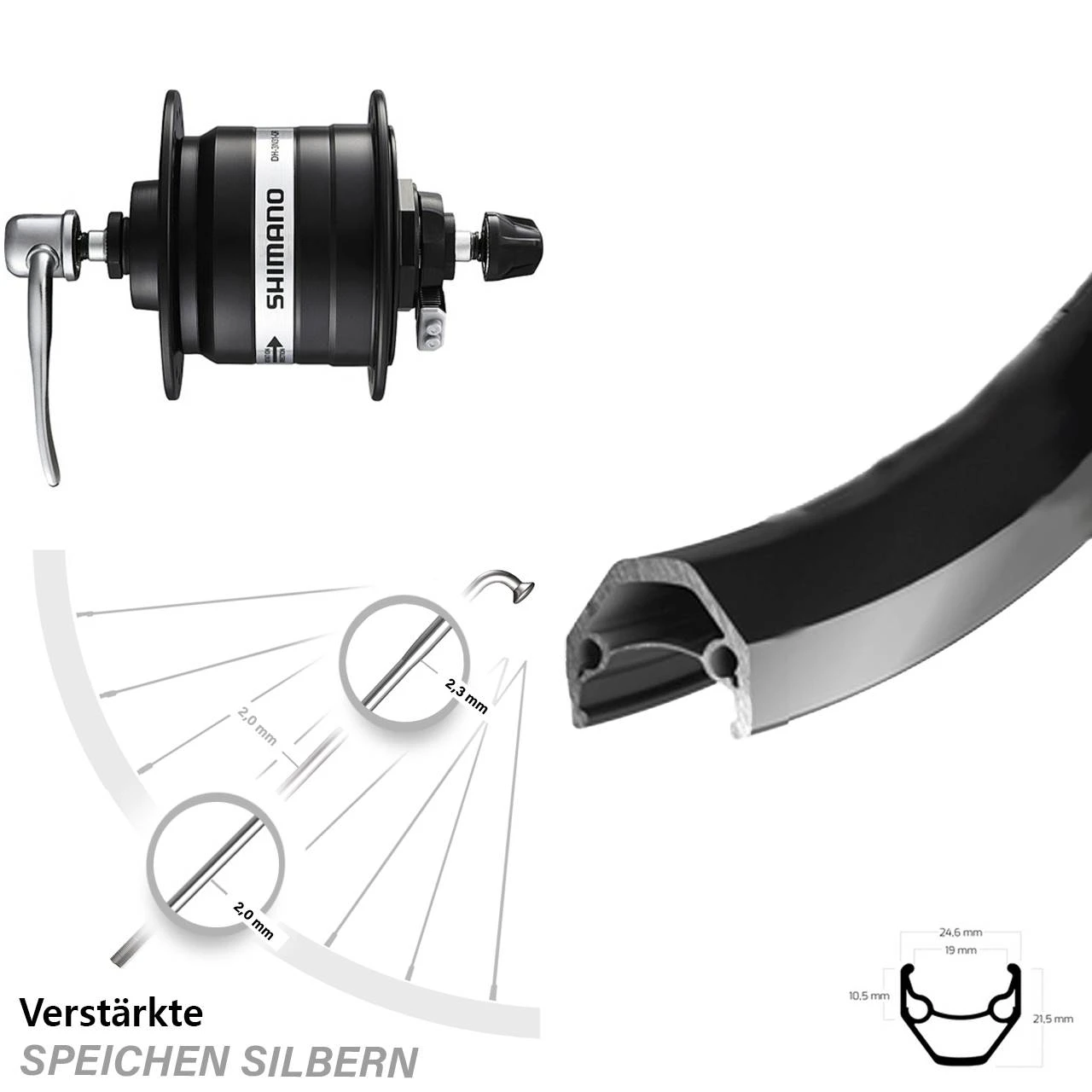 - Nabendynamo: Shimano DH-3N31-QR schwarz